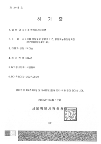 앤케이스테이션은 인력 운영 및 현장 관리 과정에서 요구되는 법적 요건과 제도적 기준은 물론, 예기치 못한 사고에 대비한 책임 이행 체계까지 갖추고 있습니다. 각종 인·허가와 보험을 기반으로 고객이 안심할 수 있는 안정적인 인력 서비스를 제공합니다.